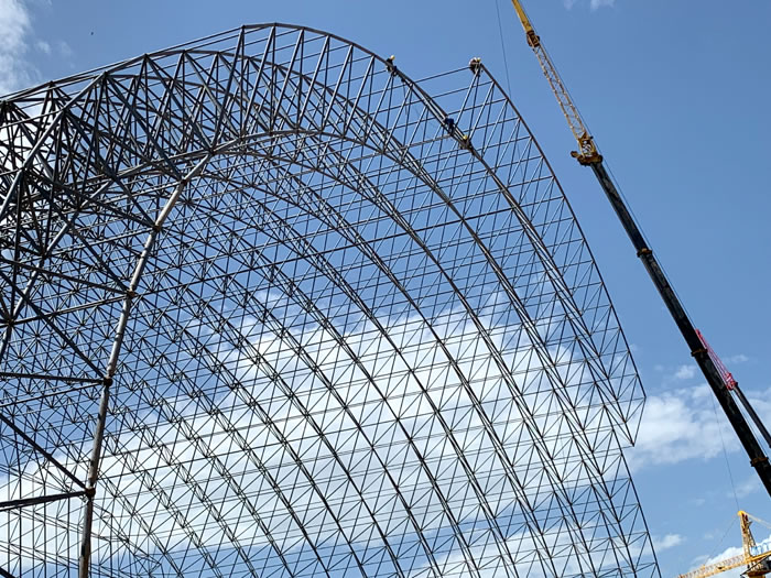 (2)网架加工前应对现场尺寸进行复测,确认无误后方可进行加工、安装;网架制作、运输、安装应遵守《空间网格结构技术规程》JGJ7-2010、《钢网架三亚螺栓球节点》JG/T 10-2009、《钢网架三亚螺栓球节点用高强度螺栓》 GB/T 16939-2016、《三亚钢结构三亚工程三亚施工规范》 GB50755-2012、《三亚钢结构三亚工程施工质量验收标准》 GB50205-2020。